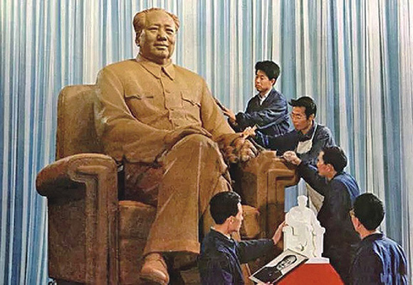 雕塑家细心塑制毛主席坐像,为雕刻毛主席汉白玉坐像做准备