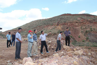 7月8日,香港房大国际有限公司执行董事总经理余汉利率队来我区考察黄金矿产,自治区经信委党组成员、副主任罗杰,自治区发改委主任助理黎友焕陪同考察。在当天举行的座谈会上,自治区黄金工业办公室主任魏尊军详细介绍了宁夏现有黄金资源地的地质勘探状况、自治区探矿权设置情况、矿产资源勘查管理情况以及矿区交通水文地理概况,考察团随行地质专家查阅了相关的黄金地质勘查报告。9日及10日,考察团先后对中卫市卫宁北山以及石嘴山市牛头沟金矿区进行了实地考察,在矿区现场,自治区有色金属地质勘查院领导和矿区勘探项目负责人,比对矿区地形地质图,为考察团具体介绍了矿区的地貌特征及矿脉走向,考察团地质专家沿矿区矿脉进行了勘察,并采集了金矿石样本,对矿区的黄金矿产赋存情况进行初步预判。考察团对矿区的交通水电状况等基础条件表示满意,对我区黄金矿区开采前景表示出了浓厚兴趣。 (黄金工业办公室)