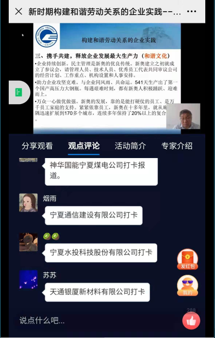 活动中,特别邀请中国企业联合会雇主工作部调研处处长王亦捷作了“新时期构建和谐劳动关系的企业实践”主题分享,邀请中国企业联合会雇主工作部副主任韩斌作了“履行社会责任,实现可持续发展”主题分享,两位专家理论水平高、专业性强,分享内容对企业实际开展工作有着很强的指导作用,受到活动参与者的广泛好评。