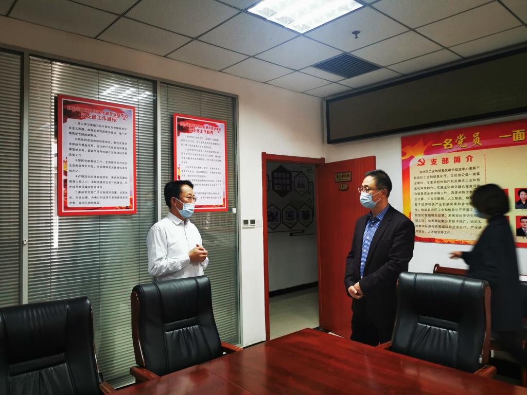 11月2日,香港a片 党组书记、厅长褚伟随机来到自治区中小企业服务中心、自治区工业节能中心、自治区工业和信息化融合促进中心调研指导工作。