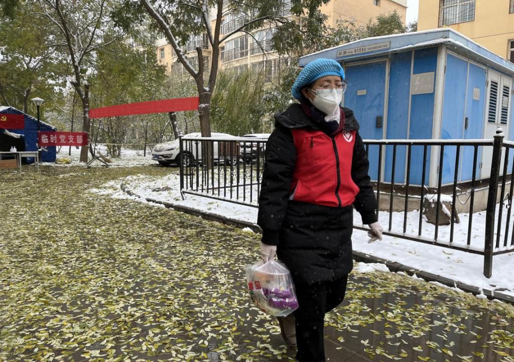 11月6日早上,天刚蒙蒙亮,我把自己包裹得像粽子似的左三层右三层,挎着包戴着厚厚的毛线帽匆匆忙忙下了楼。刚出单元门便愣住了,眼前的纯白色世界一时间令自己不能适应。漫天飞舞着白色的雪花,大地一片银白,天空也是白茫茫一片。我不禁暗暗后悔,内心思忖着“知道今天大降温,预报下雪,昨天晚上就开始准备今天要带的物品。为何唯独没有带伞呢?我简直太笨了......”想着要上楼去拿,却又担心打车的司机已经到小区门口了,一会儿还要接同事赶到新城荣锦苑小区。我看了看从天上飘下的雪花,缩了缩脖子。不知这雪是什么时候开始下的,但昨晚值夜班的同事晚上睡在帐篷中一定很冷,早点儿去可以让他们早些回家休息。想到这儿,我便毫不犹豫的冲了出去。