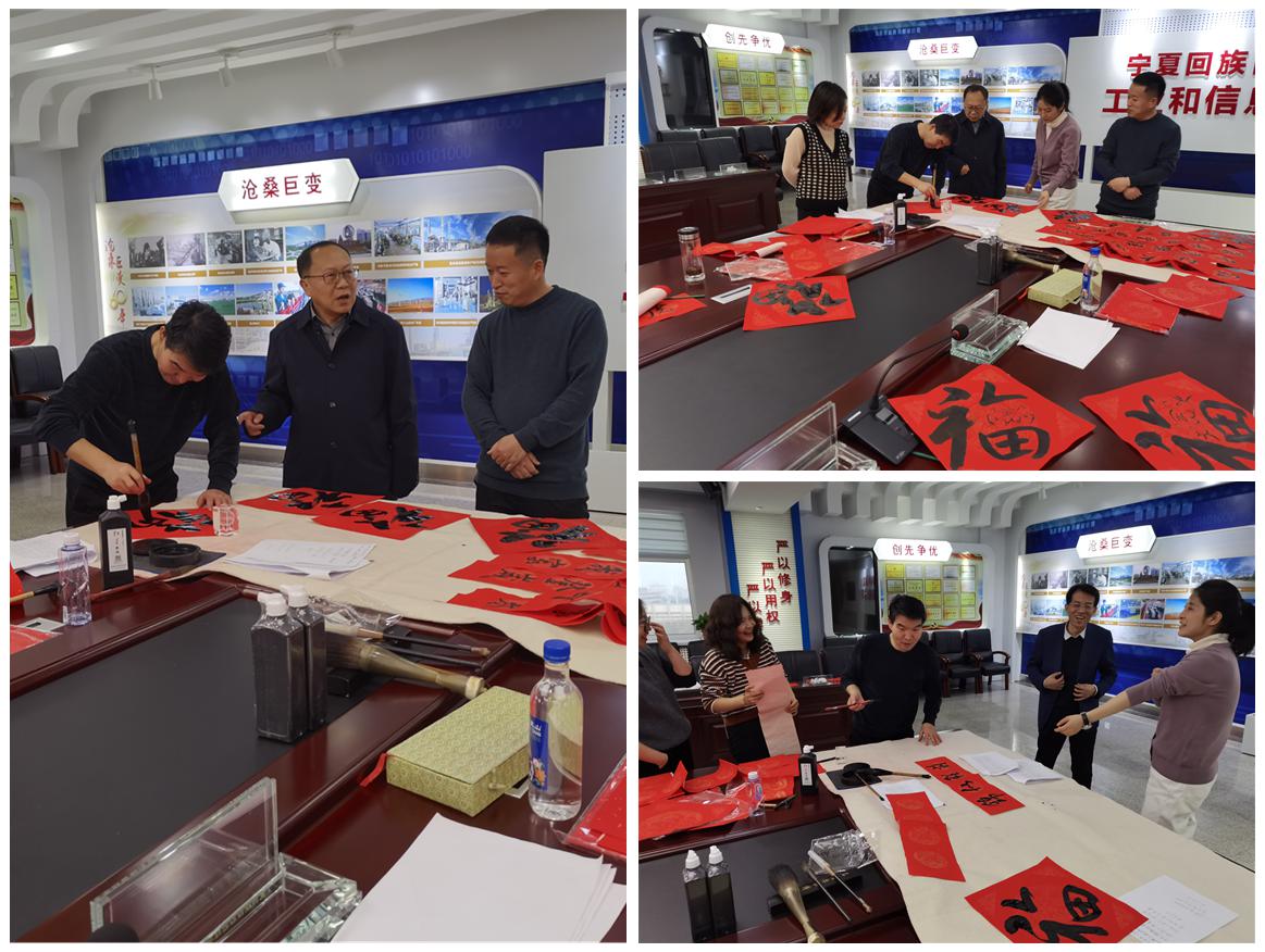 写春联,送祝福。组织机关书法爱好者为干部职工撰写春联300多副,送上对家庭、事业、生活的美好祝福。活动场面热烈,写联的妙笔生花,求联的喜气洋洋,一些干部职工积极创作个性化的对联作品,表达对新时代、新起点的热切期待。