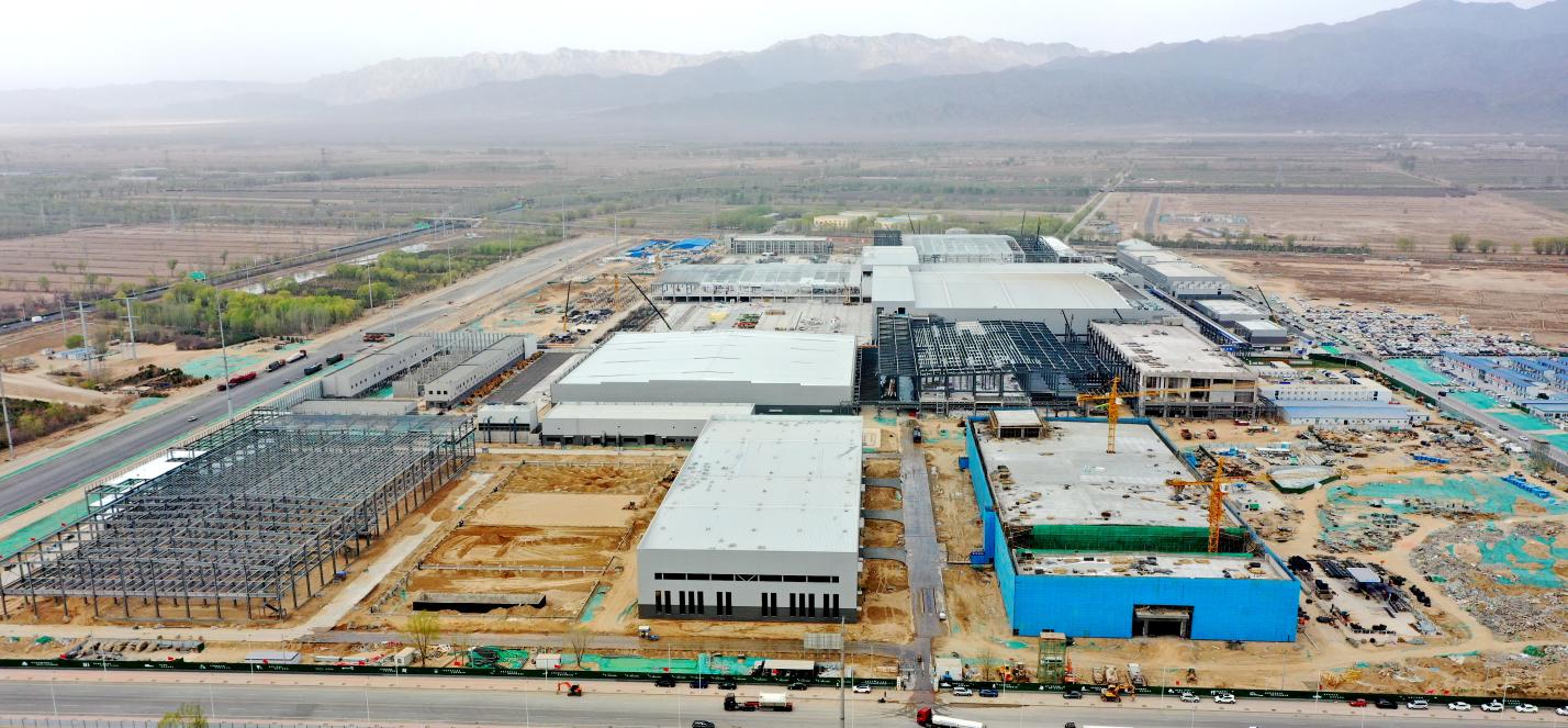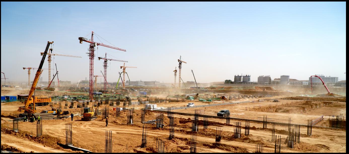 (宁夏润阳硅材料10万吨高纯多晶硅及5GW高效电池项目建设现场)