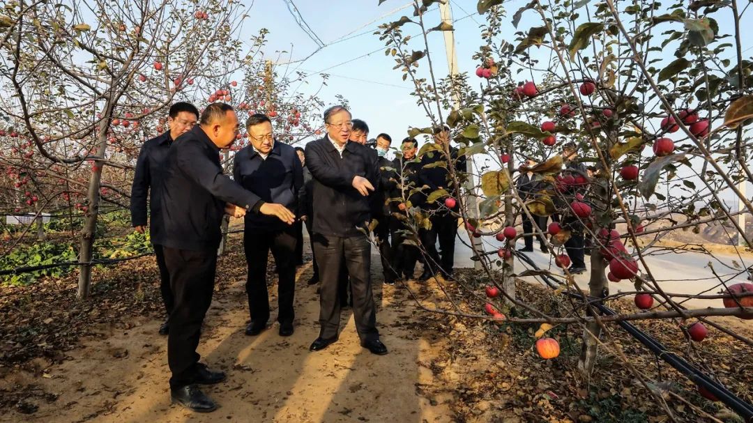 经过多年的发展,陕西省苹果面积和产量已居全国第一位,成为当地农民脱贫致富的主导产业。刘焕鑫深入延安市安塞区高桥镇南沟村苹果园和苹果洗选车间、储藏冷库,详细询问苹果种植技术、采摘方法、品种质量、销售价格和农户增收情况,对当地深入推进苹果产业高质量发展、培育壮大村集体经济、带动脱贫群众增收致富的做法表示肯定。他强调,产业兴旺是解决农村一切问题的前提,是巩固拓展脱贫攻坚成果的关键,找到合适的产业发展方向后,要坚持一张好的蓝图绘到底,保持历史耐心,锲而不舍抓下去;要积极为帮扶产业发展提供资金、人才、技术等各要素保障,支持帮扶产业基础设施建设和全产业链开发,不断提高规模化、标准化、品牌化和绿色化发展水平,推动脱贫地区更多依靠发展来巩固拓展脱贫攻坚成果,让脱贫群众更多分享产业发展收益。