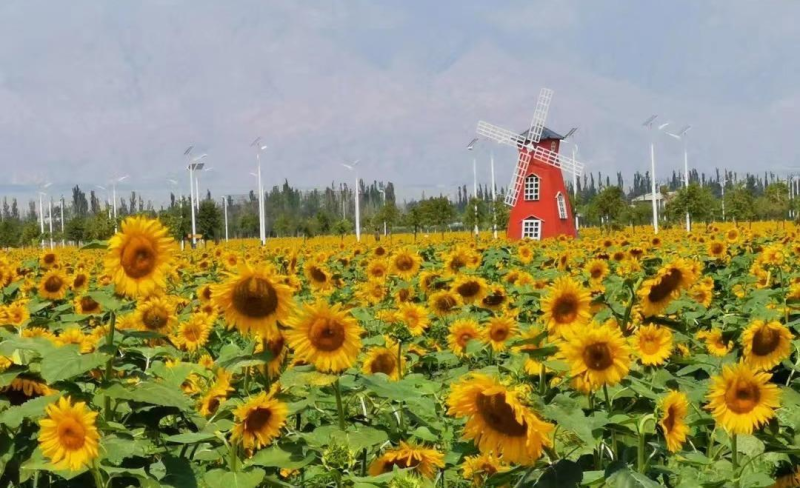 同时,镇北堡村将民宿产业、劳务输出等搭建到村级影视文化产业链上,利用辖区待开发的闲置空地打造“向阳花海”网红打卡点,形成一套成熟且完备的影视道具租赁、场景搭建、外联拍摄、群众演员组织、餐饮住宿、文创旅游等配套产业。镇北堡村驻村第一书记郭锁华介绍,该村做大做强片区特色产业,以“党支部+公司+合作社+村民”推动要素集聚,初步形成了“春赏桃李花开,夏品瓜果甜香,秋看花叶金黄,冬眺高山雪景”的农旅融合发展模式。(图片由受访单位提供)
