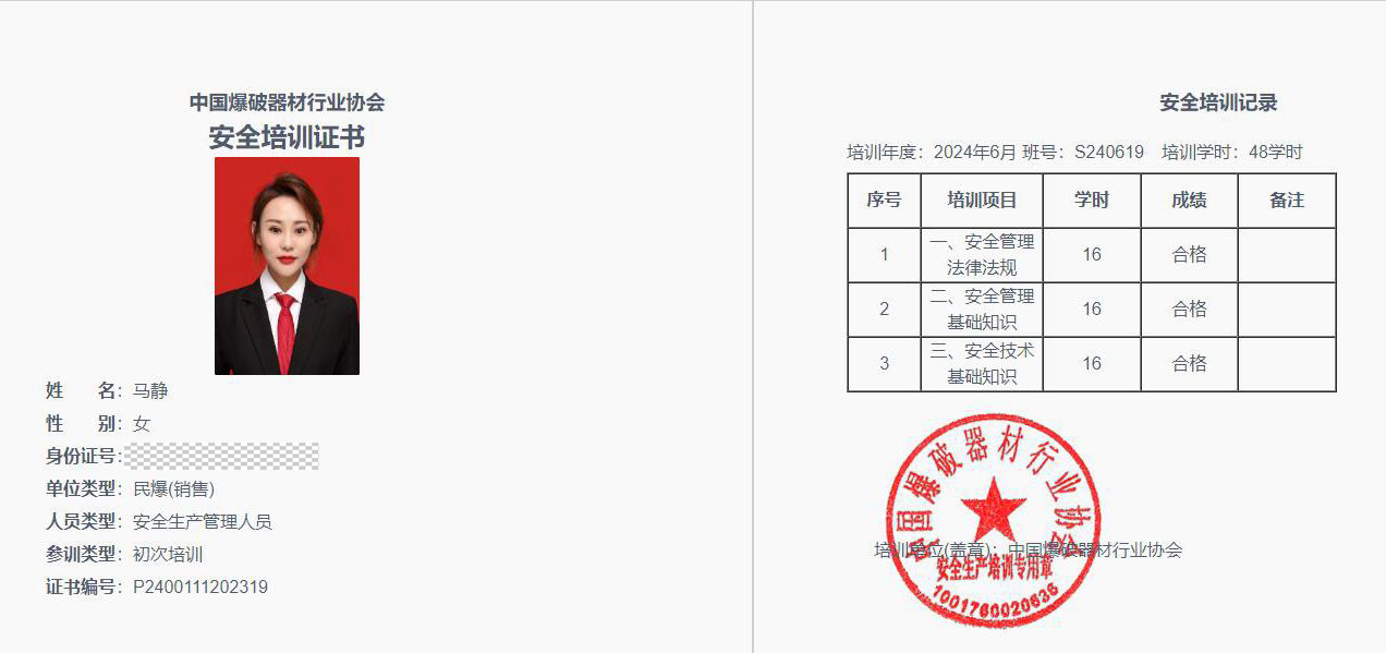 香港a片 关于聂雅捷等同志民爆行业安全生产知识和管理能力考核合格的通知