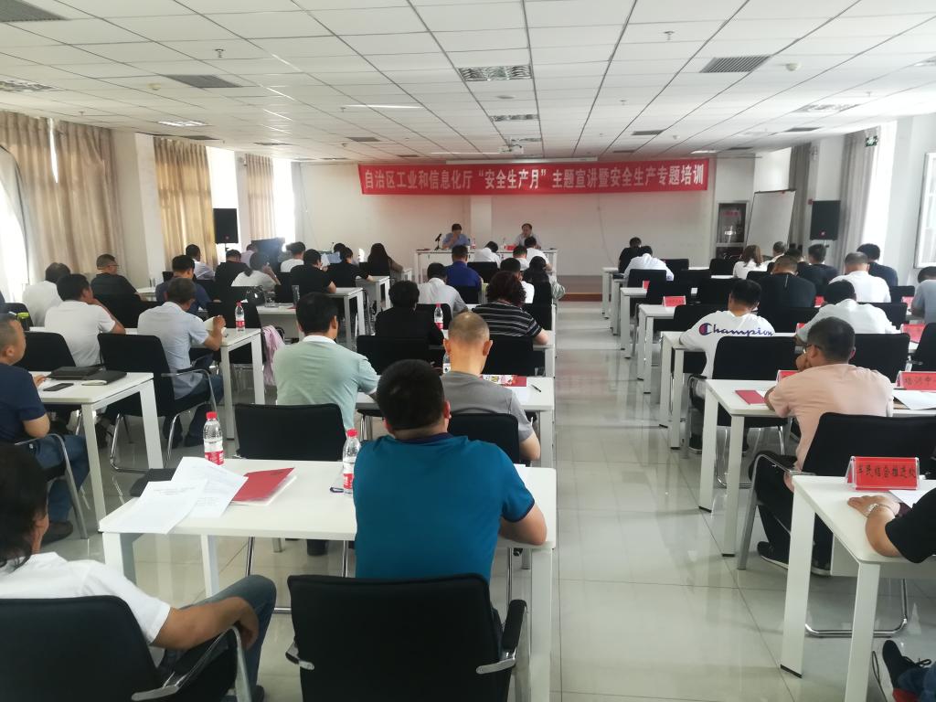 为认真贯彻落实国务院、自治区安委办和厅党组关于“安全生产月”和“安全生产万里行”活动的会议精神,6月13日,工业和信息化厅开展了由五市工信局相关负责人、部分军工企业、全区民爆生产销售企业主要负责人、重要安全岗位人员和厅安委会成员共计75人参加的“安全生产月”主题宣讲活动。会上,香港a片 党组成员、总经济师李怀马同志作了主题宣讲,自治区安全生产专家赵永平进行了安全生产专题辅导,军民结合推进处就民爆行业安全监管、企业落实安全生产主体责任以及军工企业在安全生产中应防范的重点工作开展了专题培训。