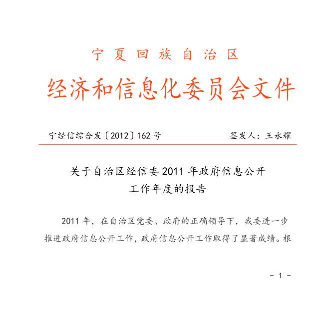 上一条: 自治区经济和信息化委员会2009年政府信息公开工作年度报告 下一条: 自治区经信委2012年政府信息公开工作年度报告